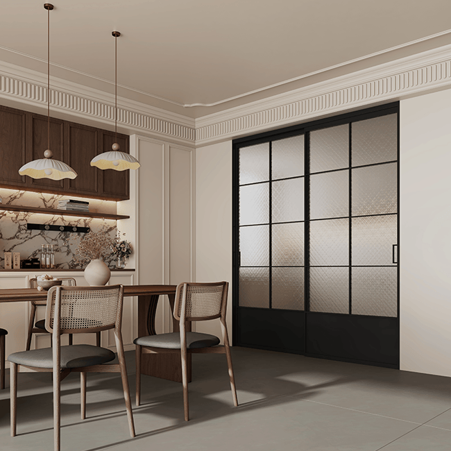 Grid-style sliding door