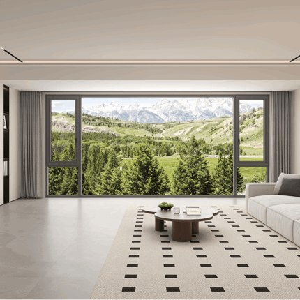 Thousands of lights illuminate 100 window screens with integrated inward-opening and tilting windows.